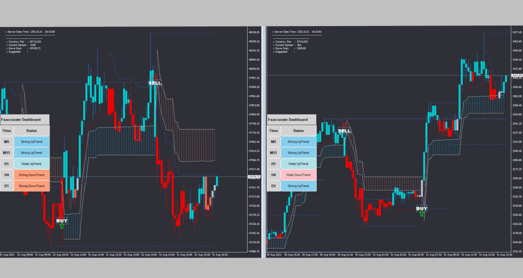 FXacccurate LARNA Indicator System can be used on any Forex currency pair and other assets such as stocks, commodities, cryptos, precious metals, oil, gas, etc. You can also use it on any time frame that suits you best, from the 1 minute through to the 1-month charts.