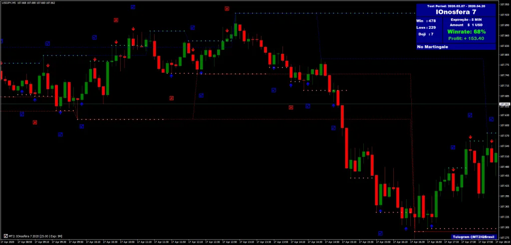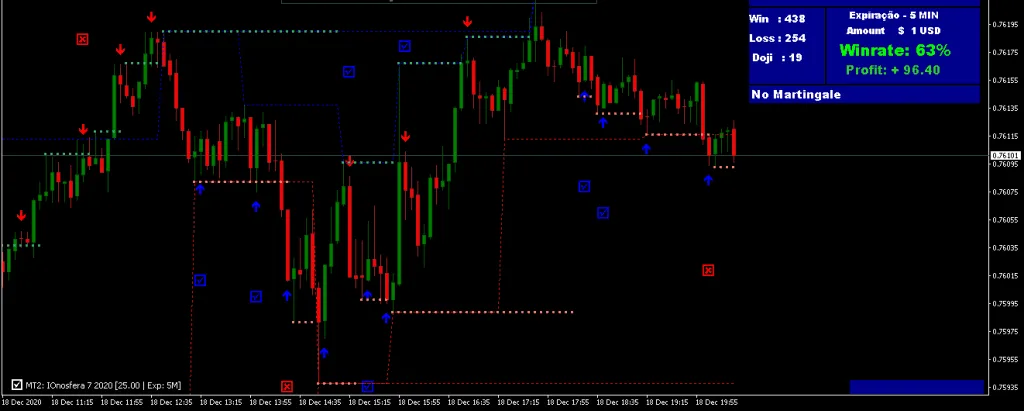 IOnosfera V7 is a NON-Repaint indicator system design for Binary Options trading that usually being sold for 150$ a month. IOnosfera algorithm, based on price action it operates support and resistance, trend lines, fibo and pullback. It has a statistics panel with more information and win rates statistics.