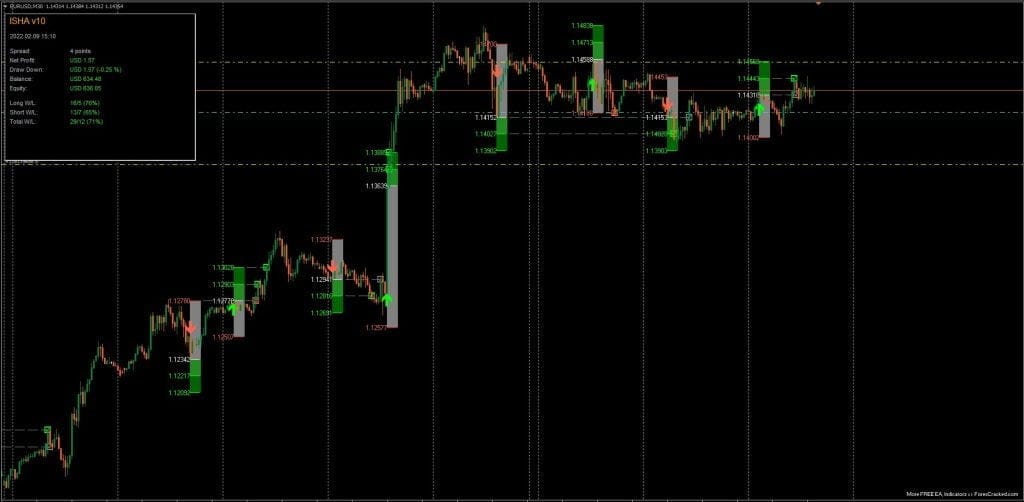 ISHA Indicator V10 is a NON-Repaint indicator system that gives easy-to-use buy/sell signals. It usually being sold for 50$ a Life Time. It comes with an ON-SCREEN dashboard that tells you spread, and Its buy and sell signals success rate.