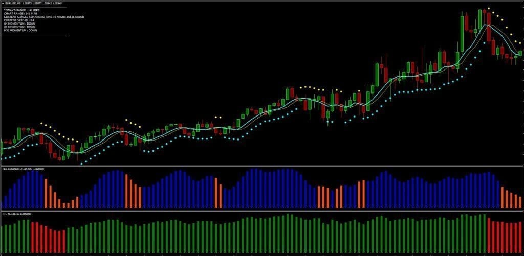 New Science of Forex Trading Indicator system provides extraordinary trading assistance for its users. It comes with an ON-SCREEN dashboard that tells you spread, monument trends, and other useful various information.