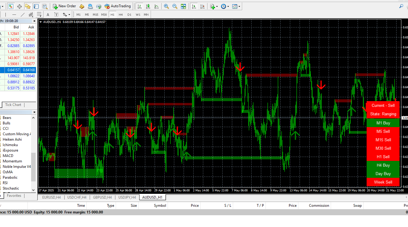 Noble Impulse Indicator system can give you trading signals you can take as they are or add your additional chart analysis to filter the signals further, which is recommended. While traders of all experience levels can use this system, practicing trading on an MT4 demo account can be beneficial until you become consistent and confident enough to go live.
