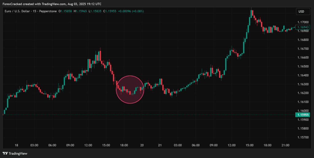 3. First Pullback Reacts at the Candle’s Open or Midpoint (Equilibrium)