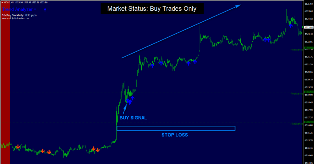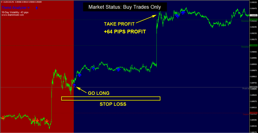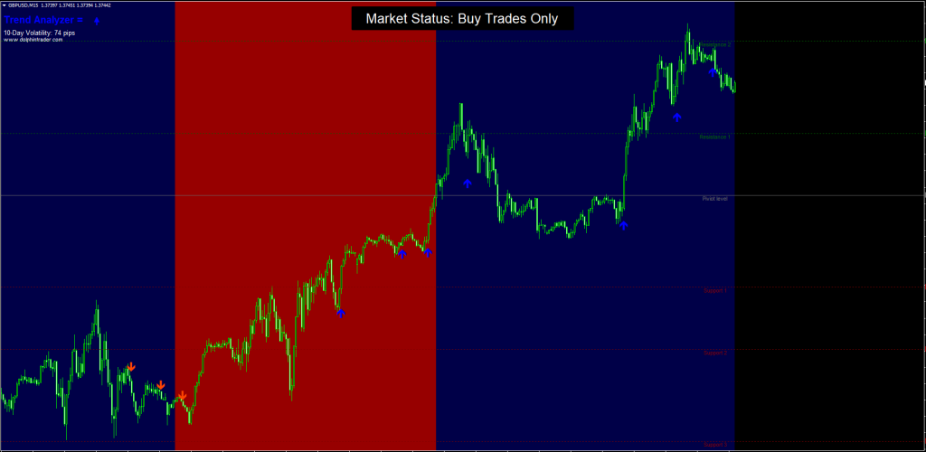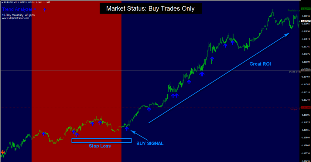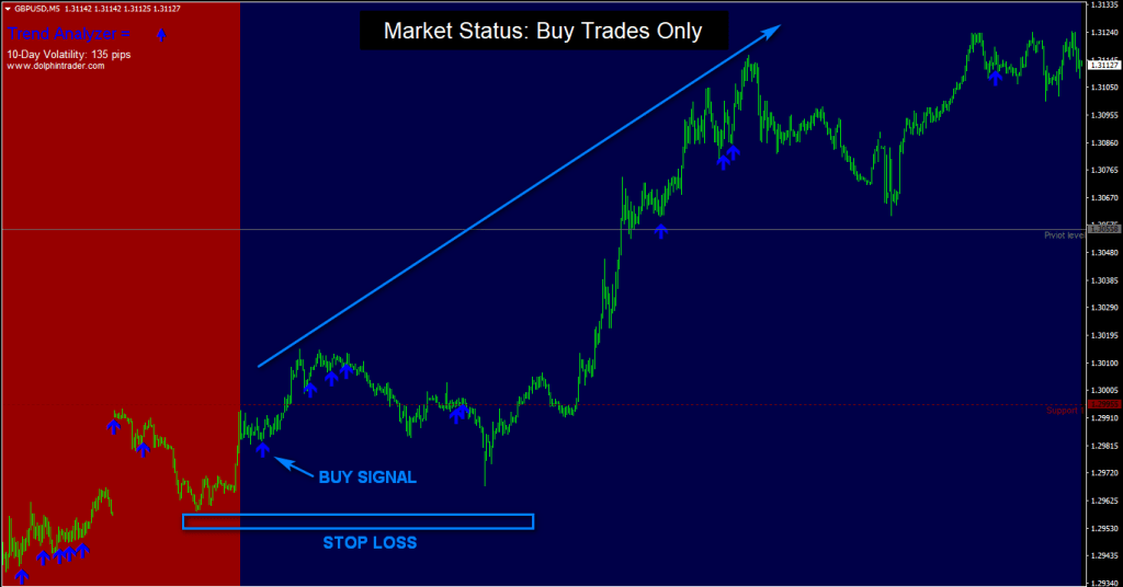 - Buy trades only when the background is colored blue.