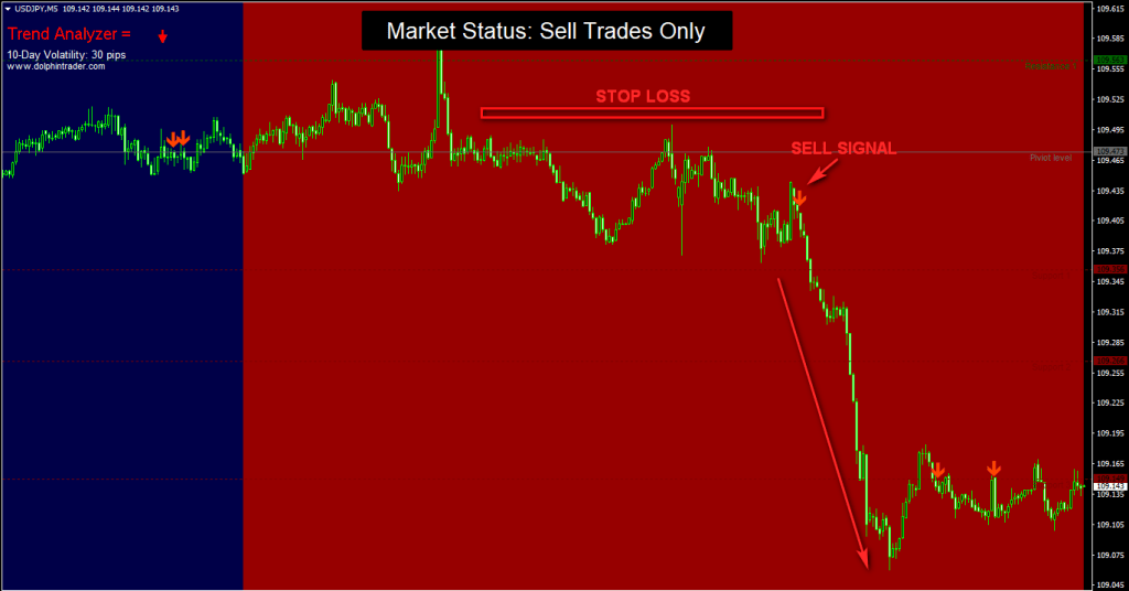 - Sell trades only when the background is colored red.