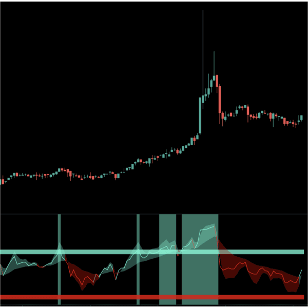 - Vertical transparent colors over SRCs line indicating SRCs line crossing above or below a certain threshold of two extremes levels of the oscillator indicator