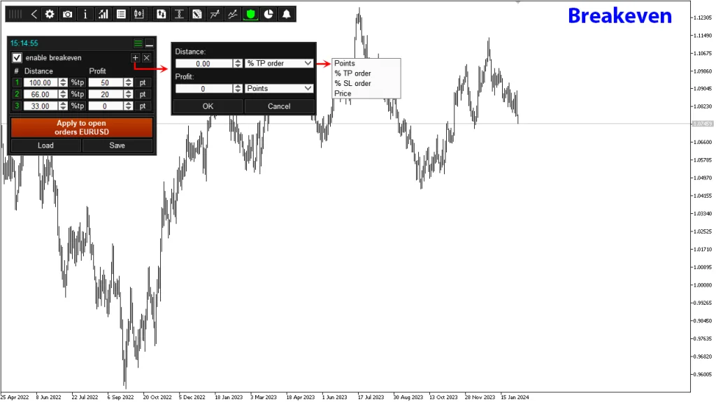 - Breakeven Stop Loss – This feature moves the SL to the breakeven level, reducing potential losses.