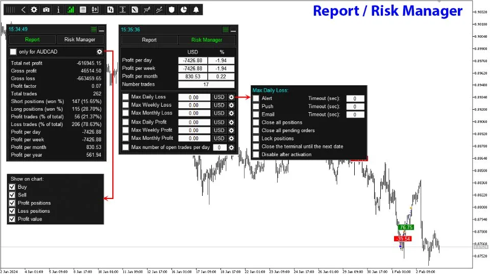 - Alerting Mechanisms – Get notifications when limits are reached, enabling automatic position closures or terminal shutdown to protect your account.