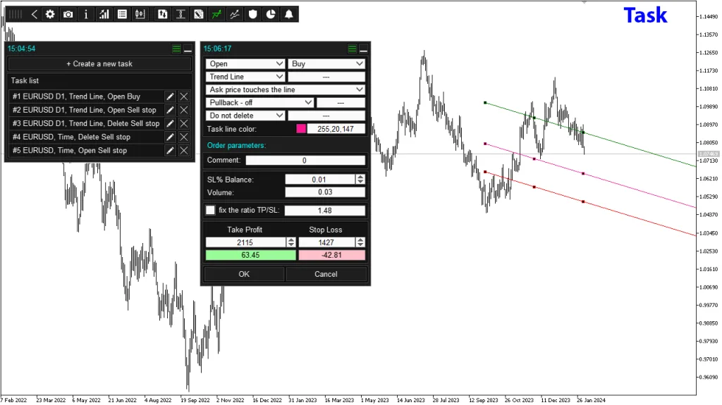 - Task Activation Triggers – These tasks can be triggered by specific times, price levels, or even the completion of another task, giving you precise control over your trading strategy.