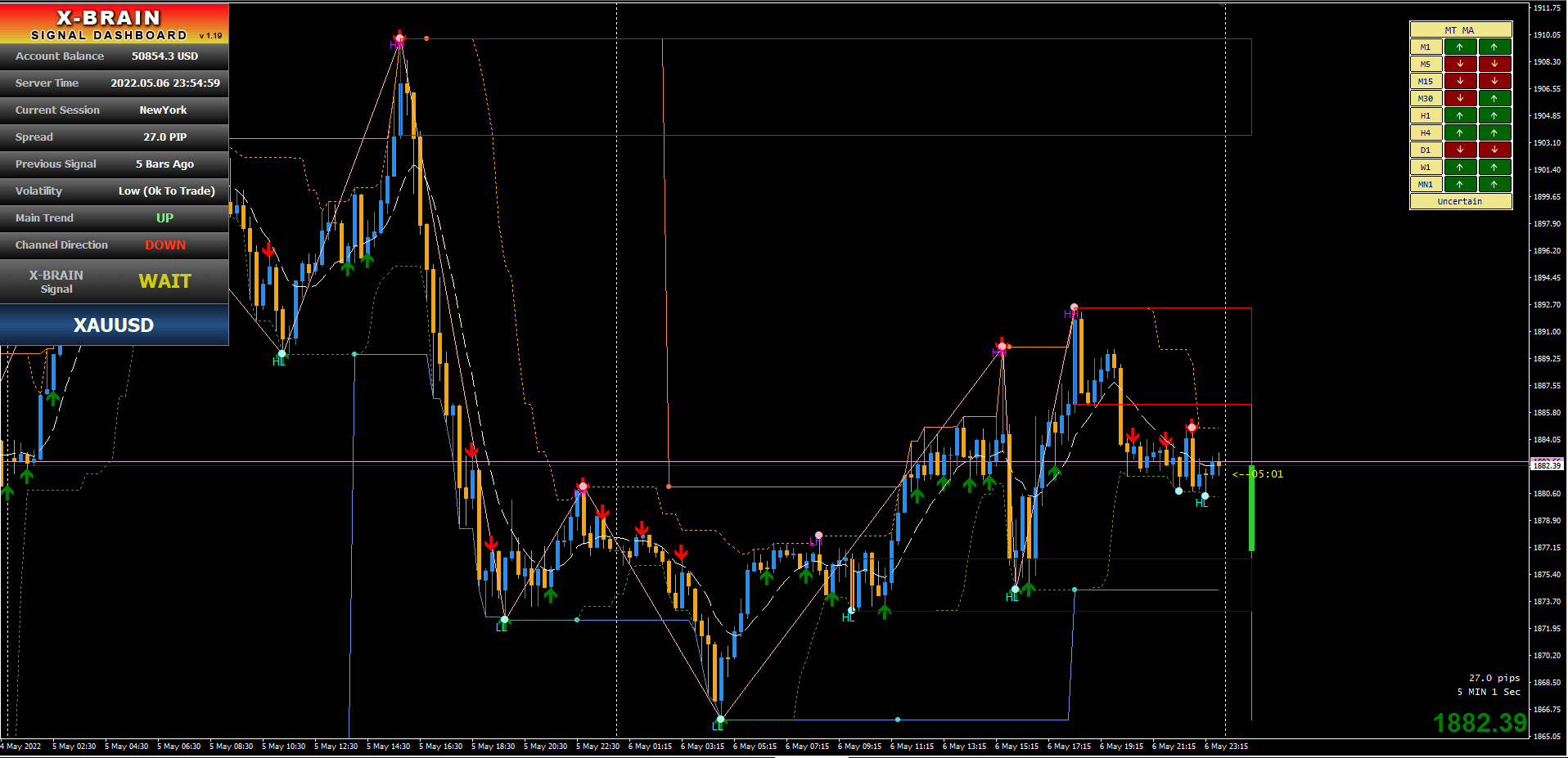 XBrain Method Ultimate Forex Indicator system can give you trading signals you can take as they are or add your additional chart analysis to filter the signals further, which is recommended. While traders of all experience levels can use this system, it can be beneficial to practice trading on an MT4 demo account until you become consistent and confident enough to go live.