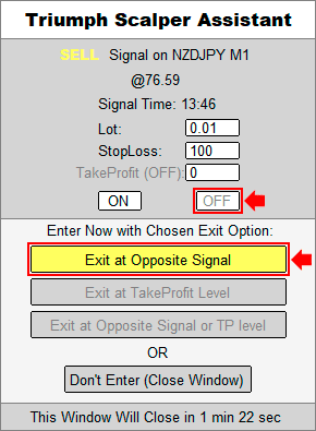 Your only task is to choose the main parameters you prefer most and click one of the buttons. “Triumph Scalper�will do all of the work for you by controlling the process and closing a trade (with the setting applied). Everything is unbelievably easy. We provide the Guide with more detailed information and examples.
