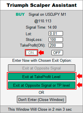 “Exit at Opposite Signal,�/strong> “Exit at TakeProfit Level,�/strong> and “Exit at Opposite Signal or TP level.�/strong>